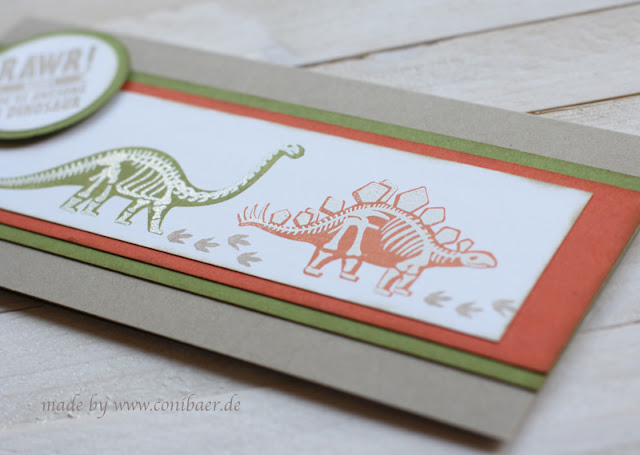 Schon bei einem ersten Blick in den neuen Katalog, als dieser für die Demos online ging, sagte mir, dass es ein "Must-have" darin gibt. Ok, natülich gab es für mich davon einige mehr, aber bei dem Stempelset mit den Dinos "No bones about it" war mir gleich klar, dass es wie für Colin gemacht ist. :o) Naja, welcher kleine Junge liebt Dinos nicht? Und noch besser, wenn sogar Knochen dabei sind!