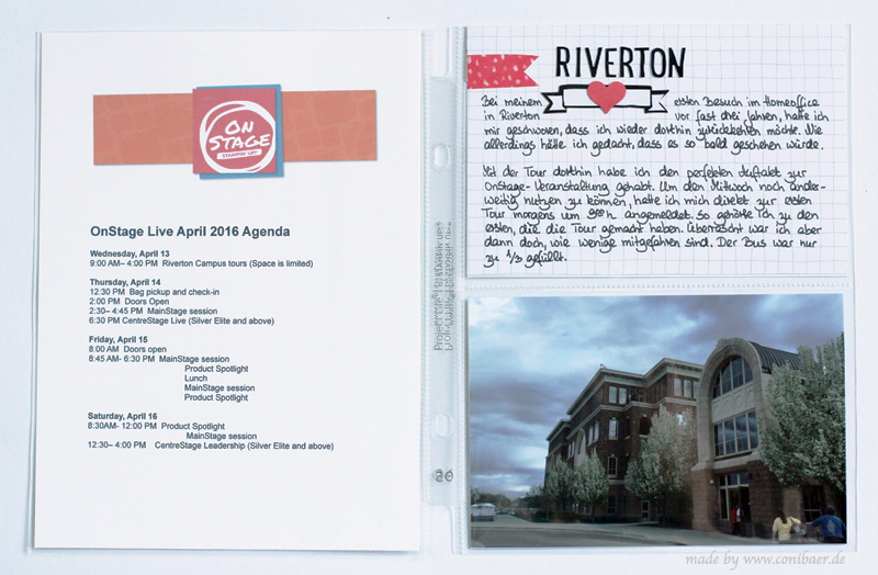 For me my OnStage experience started with my visit at the home office in Riverton. The pages I´m showing today are from this visit. The cards in this collection are so versatile. I think they can be used for almost anything. There are darker colors that look more elegant. And there are lighter and brighter colors that fit other photos perfect. And the best part: everything fits together - without having to think about it! That´s the way I like it! :D